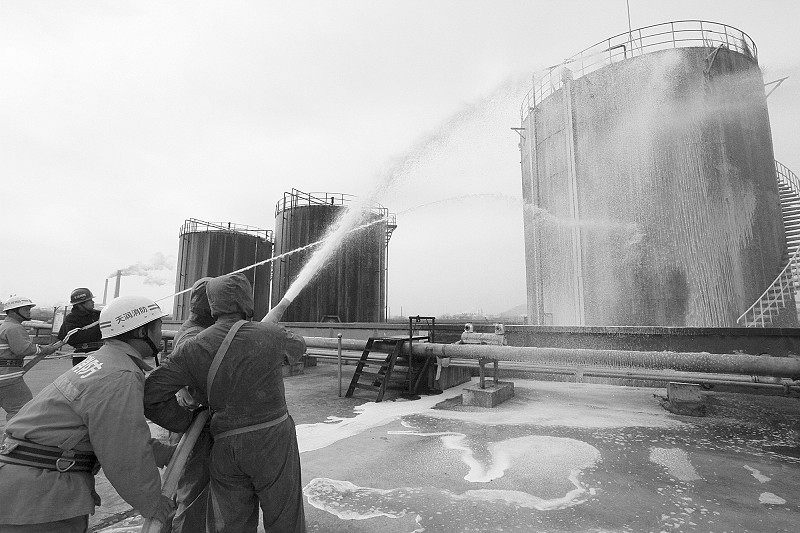 800立方米丙烯腈儲(chǔ)罐突發(fā)“泄漏”,一旦發(fā)生環(huán)境污染事故,將波及周邊大片生活區(qū),情況十分危急……昨天上午9時(shí)許,市環(huán)保局主辦的環(huán)境突發(fā)事件應(yīng)急演練在安徽天潤化學(xué)工業(yè)股份有限公司儲(chǔ)罐區(qū)舉行?!翱?!有人中毒倒地,罐體隨時(shí)有起火可能,請(qǐng)搶險(xiǎn)救援小組、醫(yī)療救護(hù)小組、消防滅火小組支援!”伴隨著急促而有序的通話,企業(yè)負(fù)責(zé)人命令立即啟動(dòng)專項(xiàng)環(huán)境應(yīng)急預(yù)案?!笆鹿省爆F(xiàn)場(chǎng),兩名穿戴防護(hù)服、身背呼吸機(jī)的救援隊(duì)員沖鋒在前,成功關(guān)閉了發(fā)生泄漏的3號(hào)罐的外排閥門,并對(duì)損壞罐體進(jìn)行搶修,防止更多化學(xué)氣體外泄;現(xiàn)場(chǎng)醫(yī)療人員抬起擔(dān)架沖進(jìn)儲(chǔ)罐區(qū),抬送“傷員”到安全地帶,組織員工向上風(fēng)口有序撤離轉(zhuǎn)移;全副武裝的消防隊(duì)員手持水槍,噴涌而出的泡沫將3號(hào)罐體團(tuán)團(tuán)包裹,罐內(nèi)化學(xué)物質(zhì)得到降溫、稀釋。
