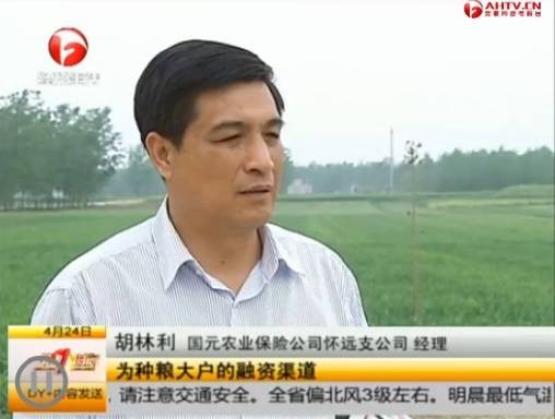 安徽電視臺(tái)經(jīng)濟(jì)頻道分別于2012年11月3日和2013年4月24日兩次對(duì)國(guó)元農(nóng)業(yè)保險(xiǎn)懷遠(yuǎn)支公司服務(wù)三農(nóng)的創(chuàng)新融資模式進(jìn)行了宣傳報(bào)道。懷遠(yuǎn)支公司積極開(kāi)展政策性農(nóng)業(yè)保險(xiǎn)保單質(zhì)押貸款業(yè)務(wù),拓寬了農(nóng)村融資渠道,助推農(nóng)業(yè)規(guī)?;?、產(chǎn)業(yè)化的發(fā)展。報(bào)道展示了企業(yè)的良好形象和服務(wù)三農(nóng)取得的優(yōu)秀成績(jī)。